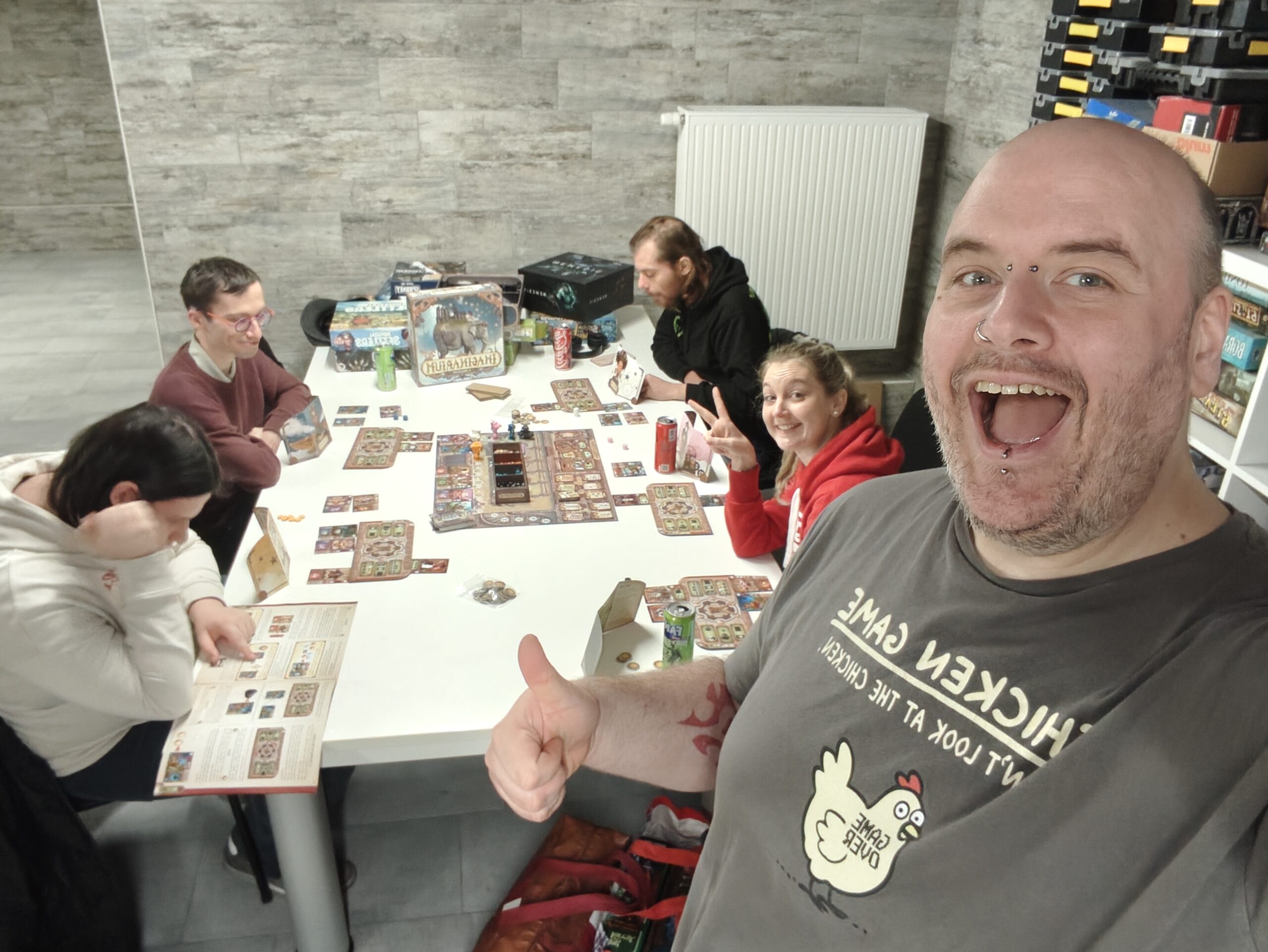 Omdat dit de eerste editie was, speelden de meeste mensen in de groep waarin ze waren toegekomen. Tegen het einde van de avond kwam daar spontaan verandering in, toen Mark, de eigenaar van Mishra’s Playground, ons samenbracht rond El Grande. Een fijn moment dat toont hoe dit in toekomstige edities alleen maar verder kan groeien.