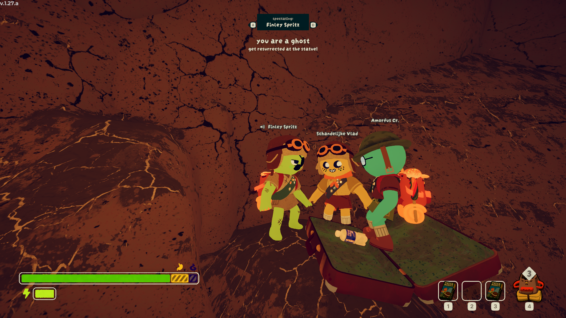 De sessie zat vol grappige en spannende momenten: iemand vond een trompet en zorgde voor de soundtrack van ons avontuur 🎺, en dankzij de area voice chat hoorde je elkaar alleen als je in de buurt was. Wie stierf, werd een spook dat zijn team toch nog kon volgen én met hen communiceren.